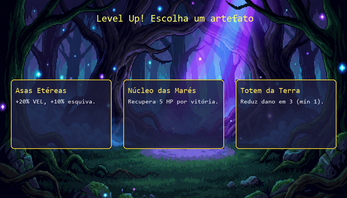 Os inimigos também recebem artefatos aleatórios, então nenhuma partida é igual à outra. Morreu? Volta pro começo, mas com a experiência (e talvez a teimosia) de quem já sabe que pode ir mais longe.