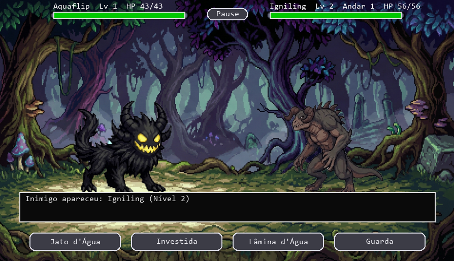 Você escolhe seu monstro inicial, enfrenta uma floresta cheia de criaturas únicas e sobe andares infinitos em combates de turno rápidos e estratégicos. Ao vencer, desbloqueia artefatos poderosos que mudam completamente o jeito de jogar: roubo de vida, escudos malucos, buffs de fúria e muito mais.